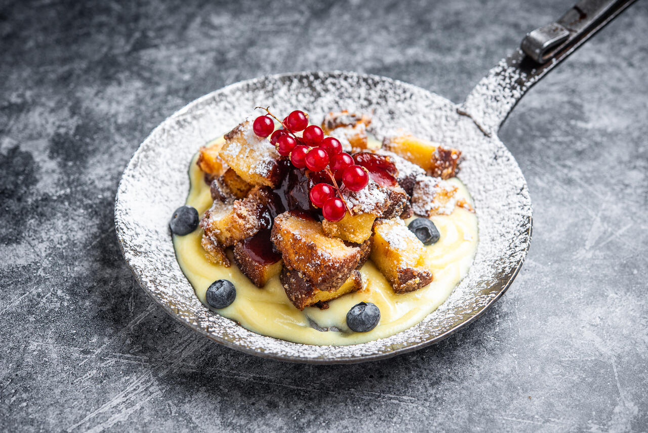 Kaiserschmarrn - õhulised pannkoogiribad ploomimoosi ja vaniljekastmega